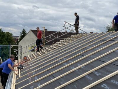 Bei einer Dachumdeckung wird das alte Dach abgenommen und durch ein neues ersetzt. Dies ist eine umfangreiche Arbeit, die von erfahrenen Zimmerleuten durchgeführt werden sollte. Zunächst wird das alte Dach abgedeckt und entsorgt. Anschließend wird das neue Dach aufgebaut, wobei die Zimmerleute das Dach entsprechend den örtlichen Bauvorschriften und den individuellen Anforderungen des Kunden gestalten.